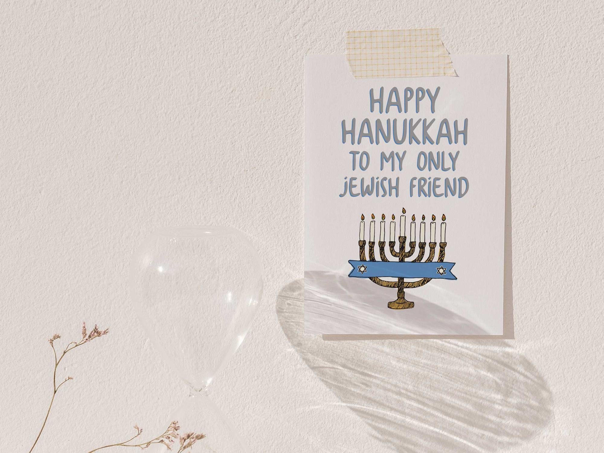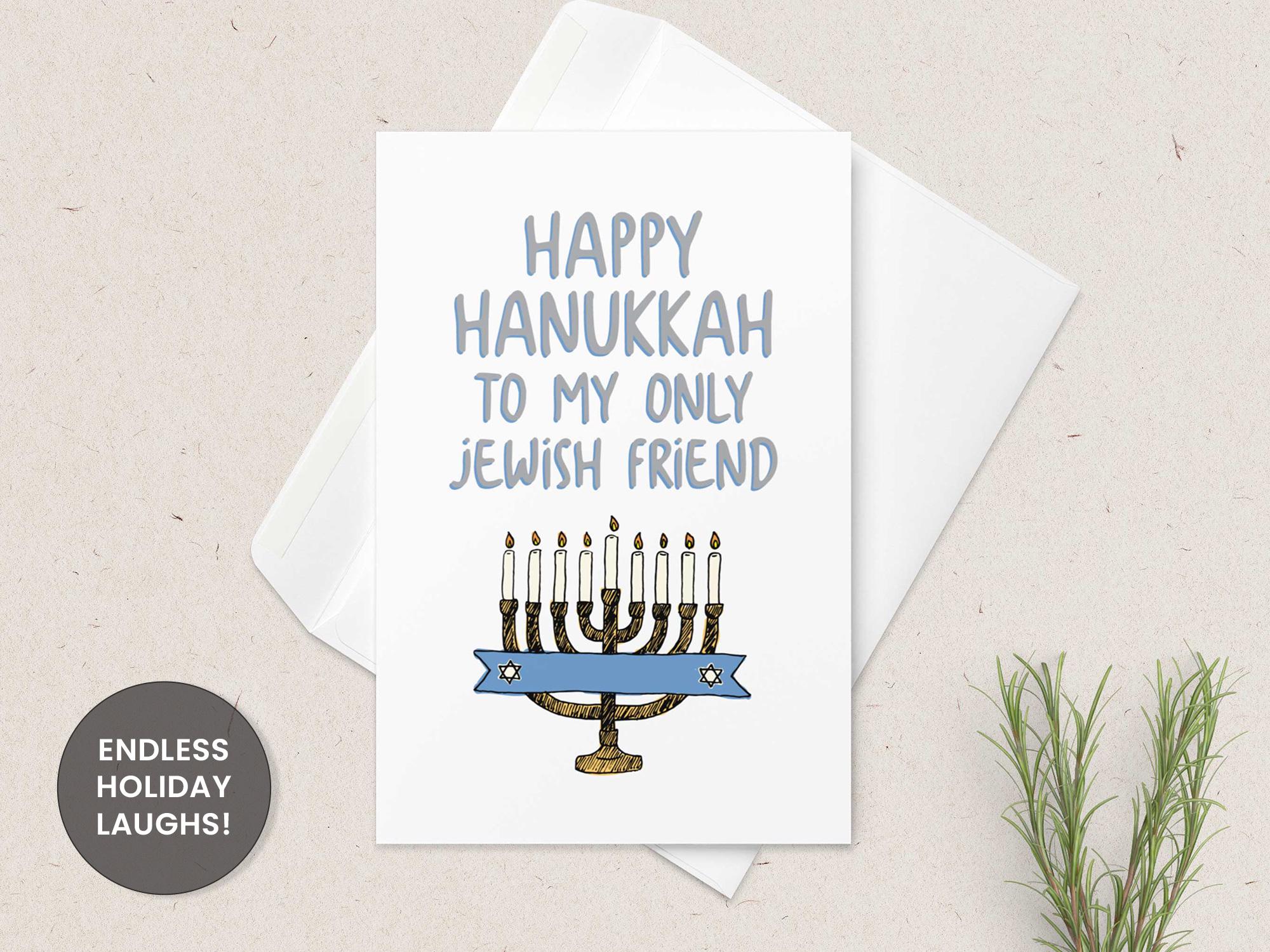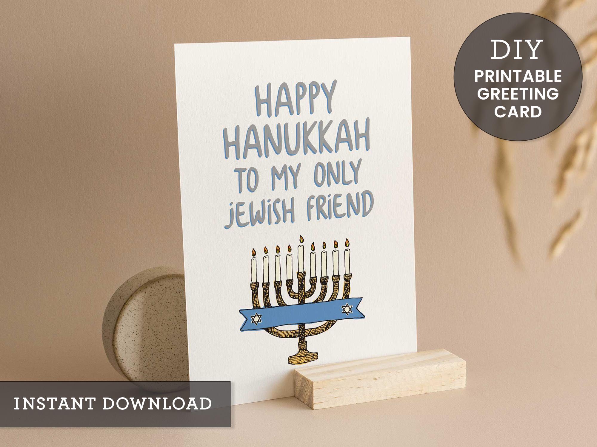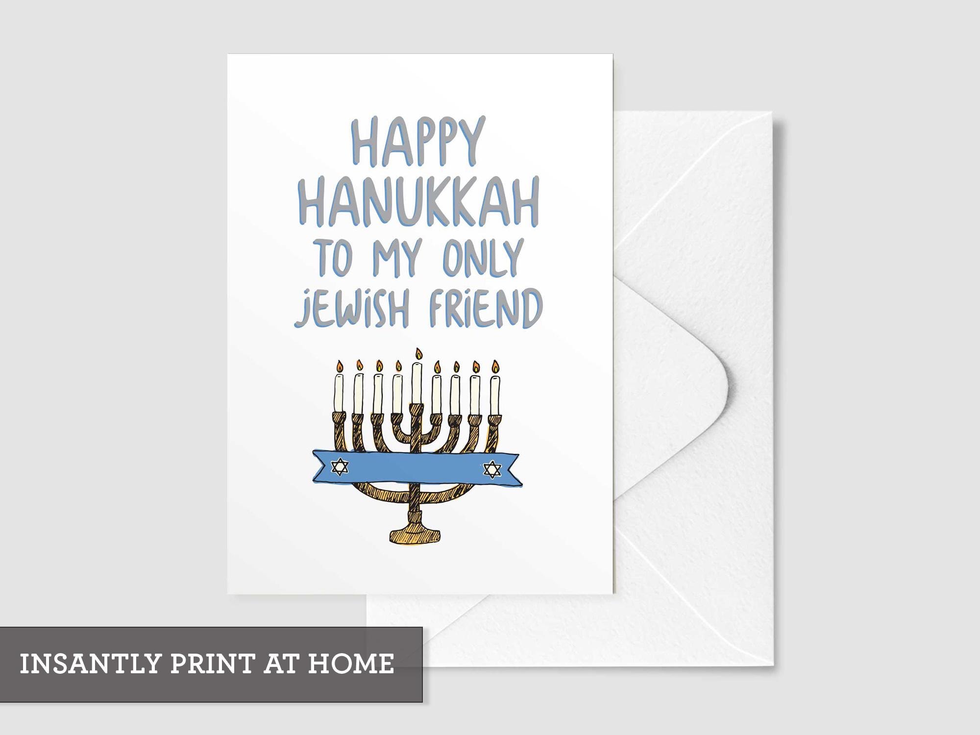 Perfect for sending a laugh and holiday cheer to your closest Jewish friend. Printable A2 card, blank inside. Instant download, easy to gift.